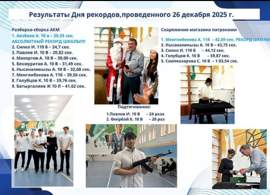 В рамках мероприятия учащиеся продемонстрировали отличную физическую подготовку, точность и скорость в разборке-сборке АКМ, снаряжении магазина патронами, а также в подтягивании на перекладине. По итогам были зафиксированы школьные рекорды и определены лучшие результаты в каждом виде.